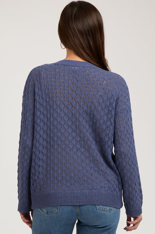 Navy Diamond Open Knit Maternity Top