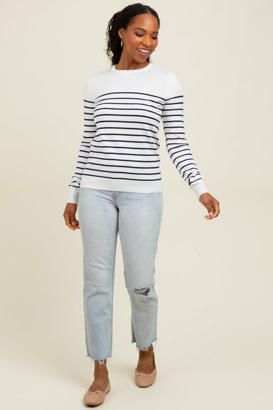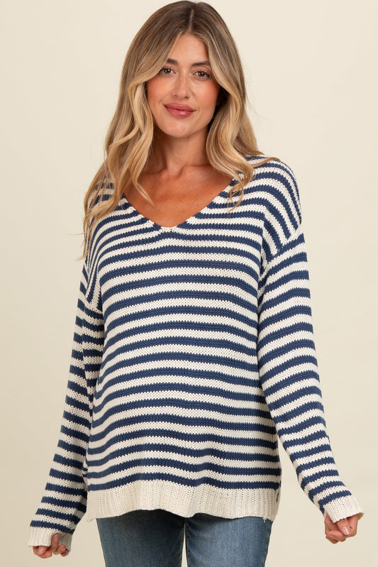 Navy Striped Relaxed Fit V-Neck Maternity Sweater