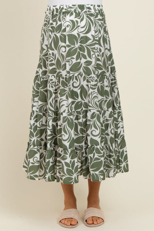Olive Floral Button Front Tiered Long Sleeve Maxi Dress