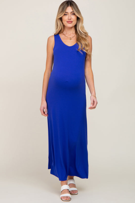Royal Ruched Mesh Foldover Off Shoulder Maternity Maxi Dress
