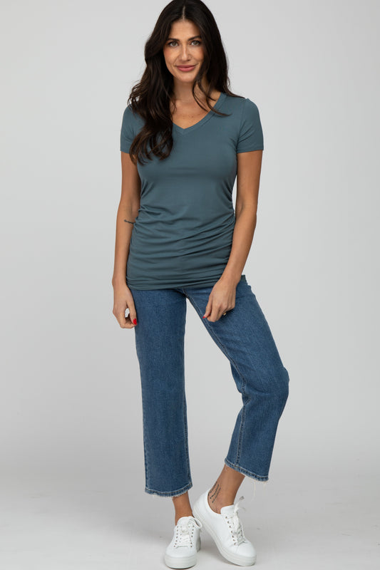 Teal Ribbed Short Sleeve Maternity Pajama Set