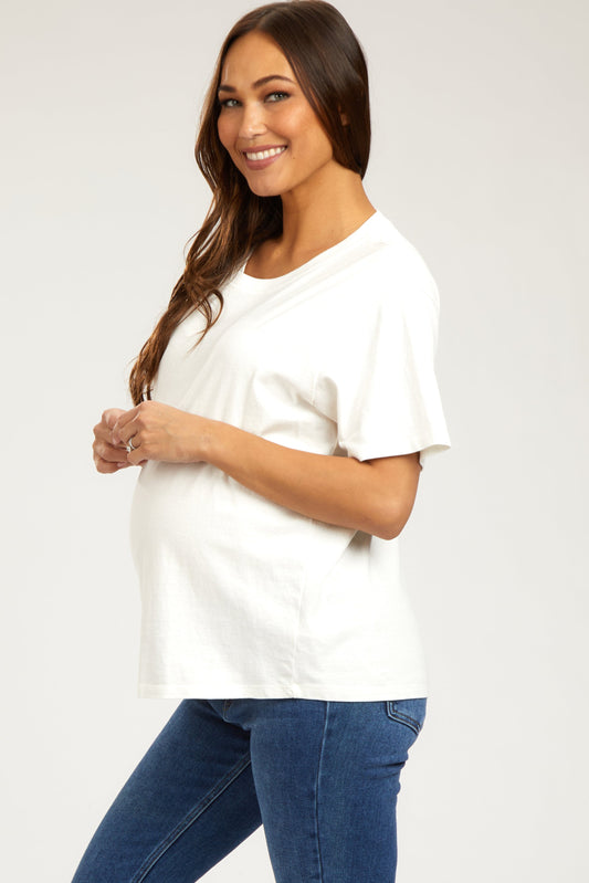 White Textured Stripe Halter Side Slit Maternity Maxi Dress