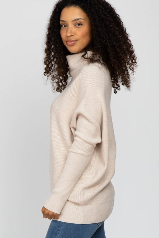 Beige Long Sleeve Raised Seam Maternity Sweater