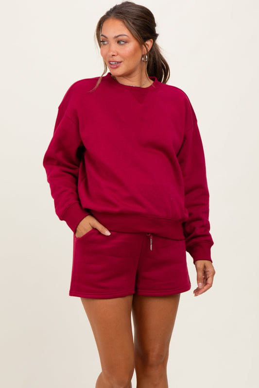 Burgundy Fleece Sweatshirt Shorts Maternity Set