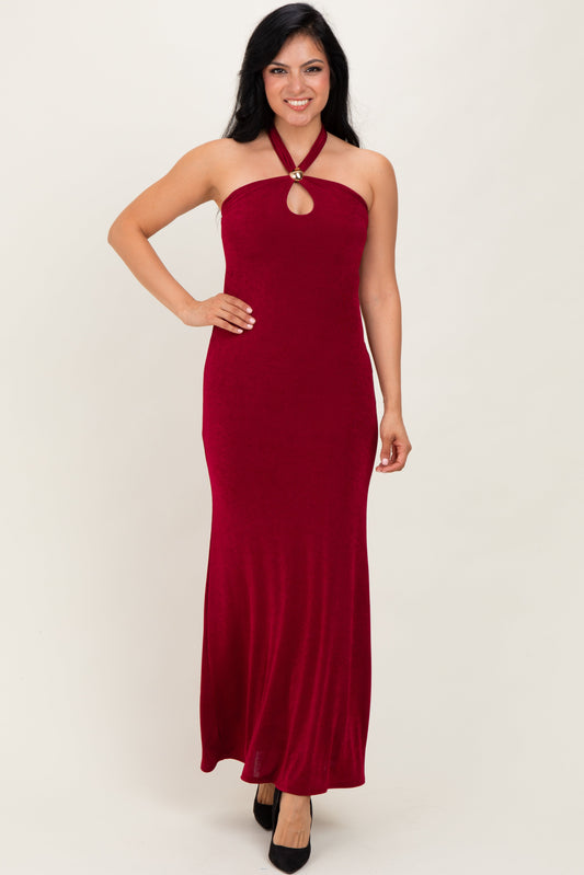Burgundy Lace Inset Smocked Maternity Maxi Dress