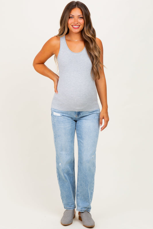 Light Blue Distressed Open Knee Straight Leg Maternity Jeans