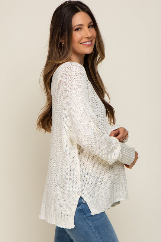 Cream Chunky Knit Side Slit Maternity Sweater