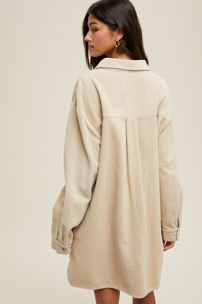 Meet your new favorite bump-friendly style! This Beige Corduroy Shirt Mini Dress is an effortlessly chic staple for every mom-to-be. Crafted in soft, lightweight corduroy, it features a classic collared neckline, full-length button front, and cuffed long sleeves for versatile styling. With a relaxed fit and mini length, this dress offers flattering comfort through every trimester and beyond. Pair it with sneakers or boots for an easy, on-trend look that transitions perfectly from errands to brunch. Nursing-friendly and timeless—this is the dress you’ll reach for again and again!