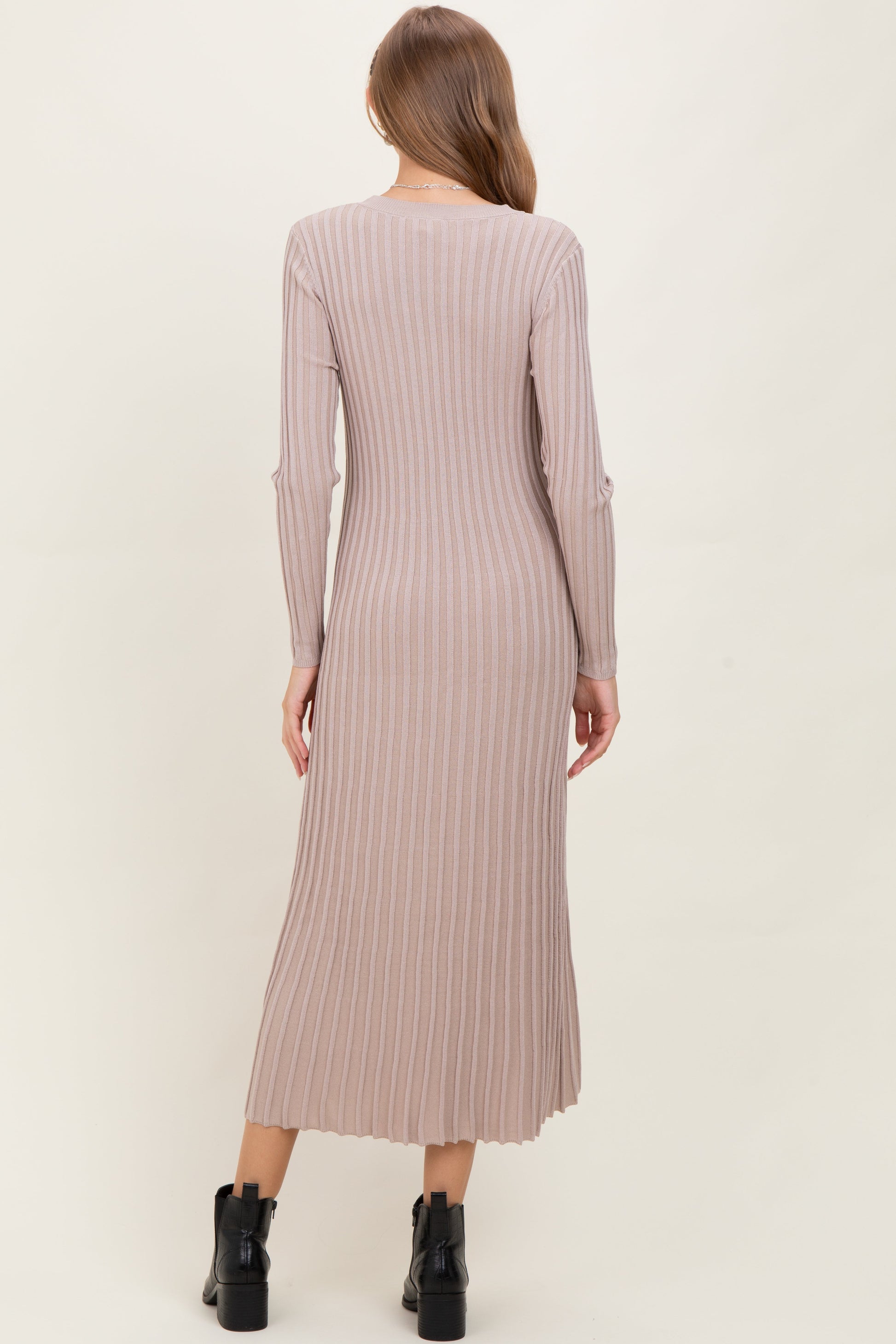 Beige Ribbed Long Sleeve Maternity Sweater Midi Dress