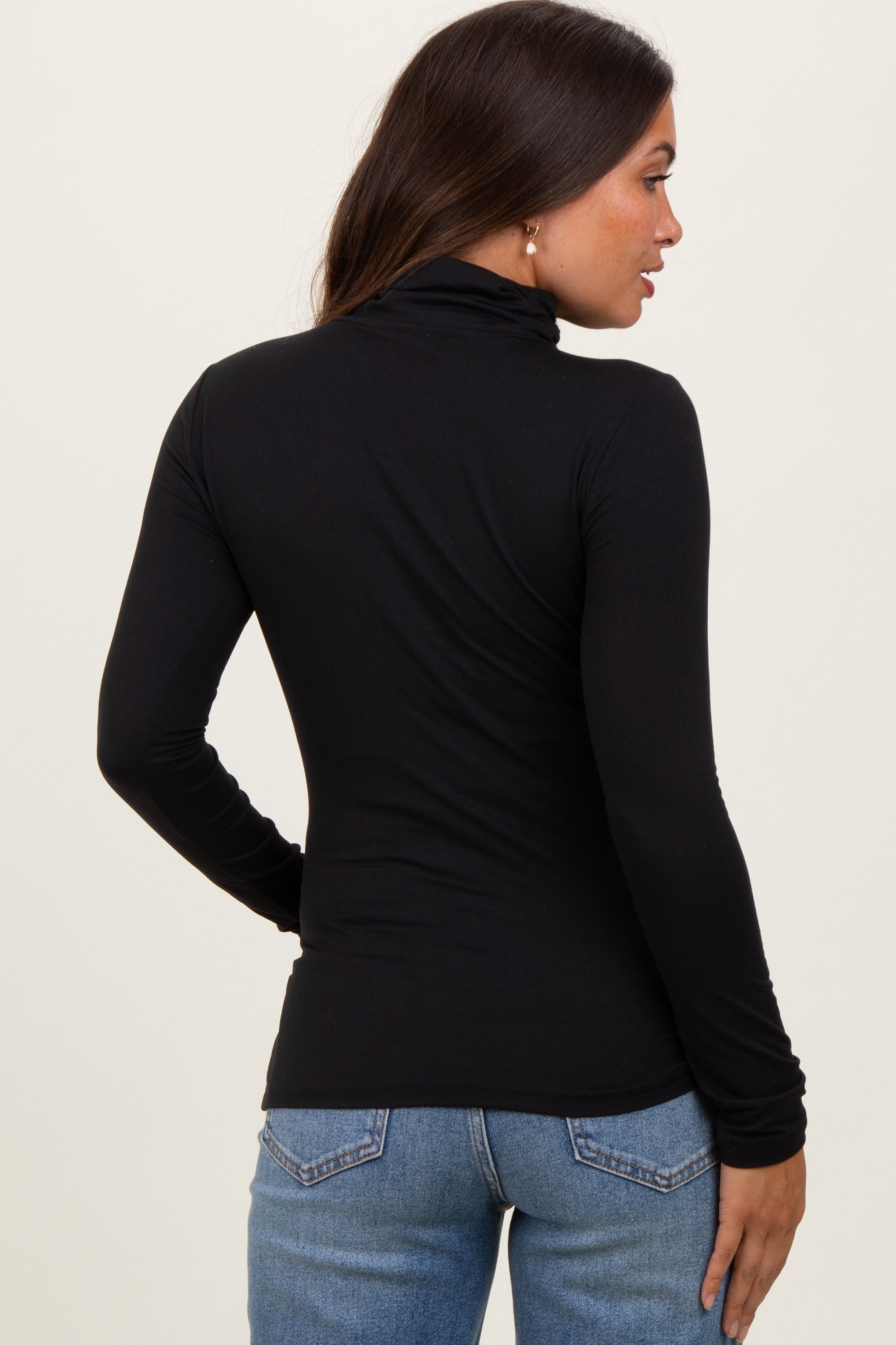 Black Brushed Knit Basic Turtleneck Maternity Top