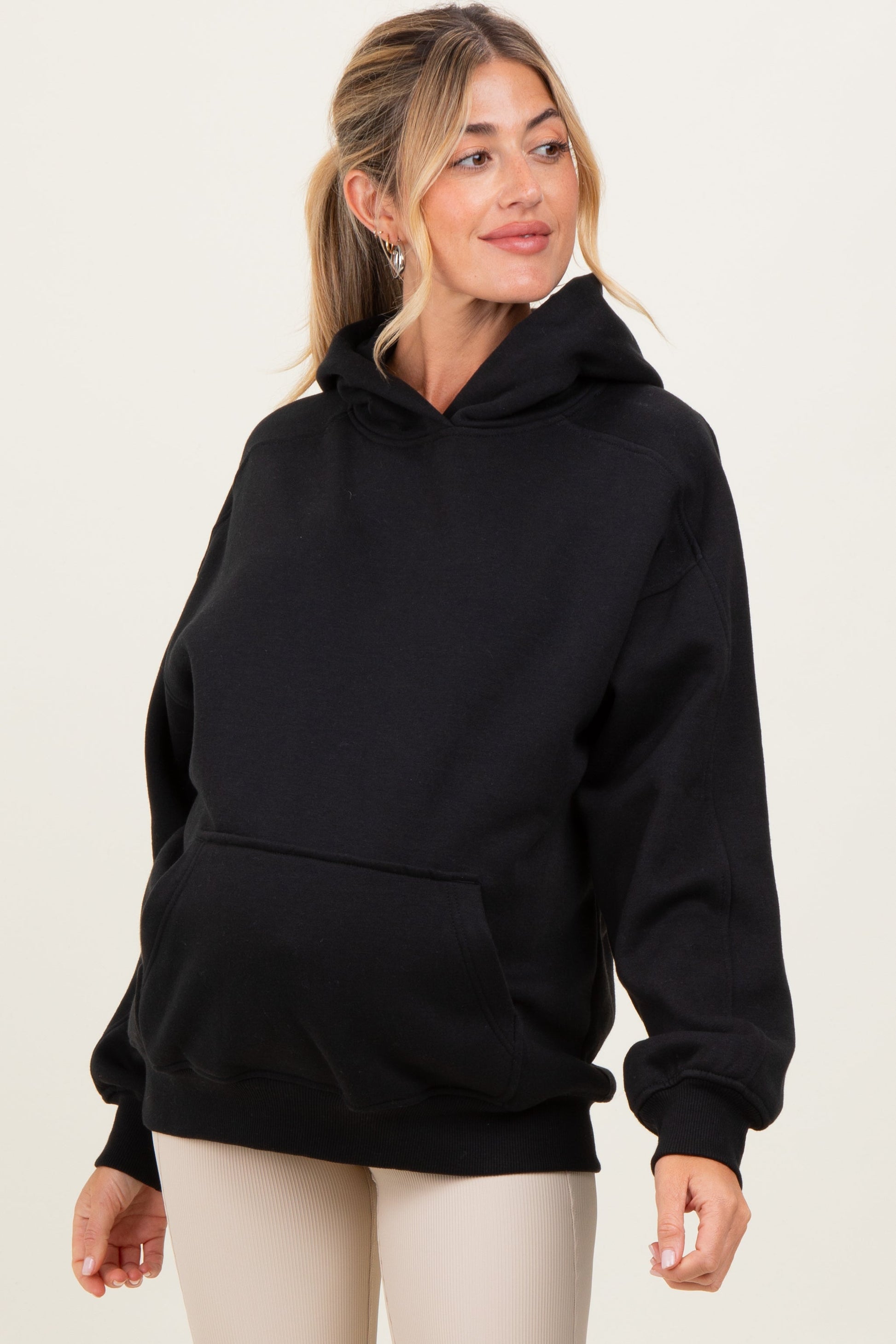 Stay cozy and stylish throughout your pregnancy with our Black Fleece Oversized Maternity Hoodie. Designed with extra room to accommodate your growing bump, this hoodie features a soft, plush fleece interior for ultimate comfort and warmth. Its relaxed oversized fit and dropped shoulders offer a modern, laid-back look, perfect for layering or wearing alone. The front kangaroo pocket adds practicality, while the classic black color pairs effortlessly with any outfit. Whether you're lounging at home or running errands, this maternity hoodie is your go-to for cozy, casual wear all season long. Easy to care for and made to move with you.