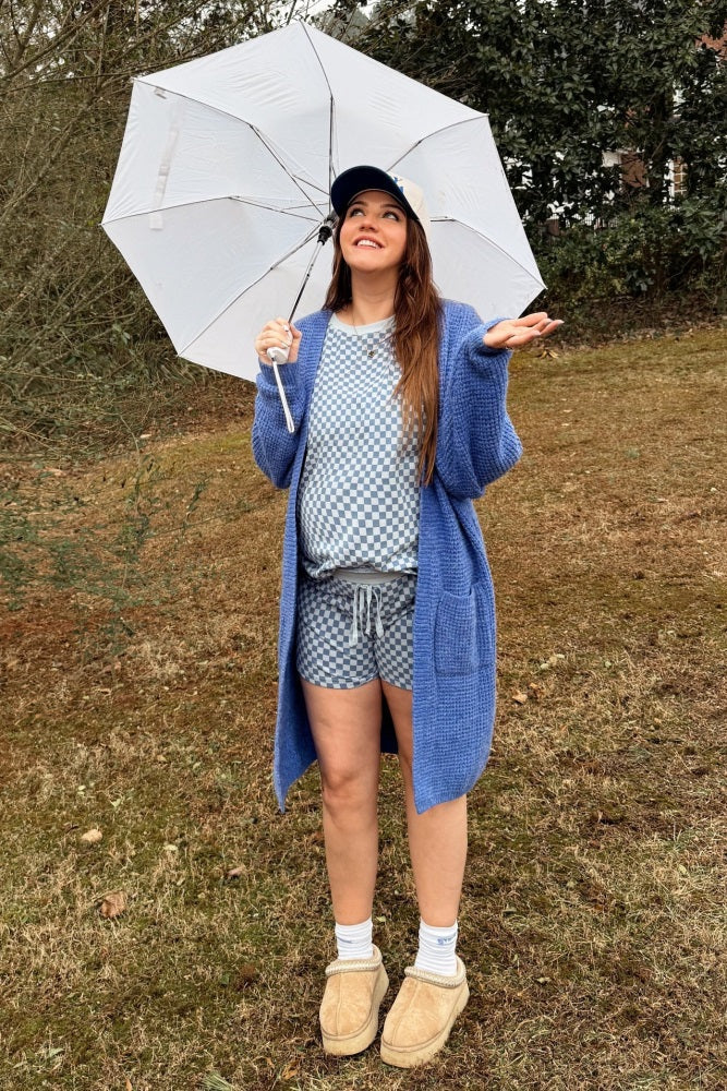 Blue Checkered Plaid Pullover Shorts Maternity Set