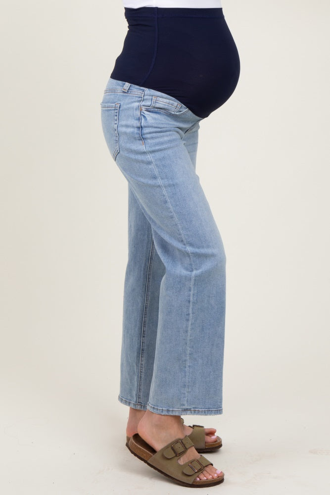 Blue Straight Leg Ankle Maternity Jeans