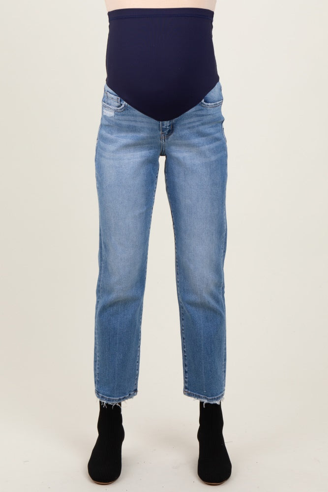 Blue Vintage Wash Cropped Straight Leg Maternity Jeans