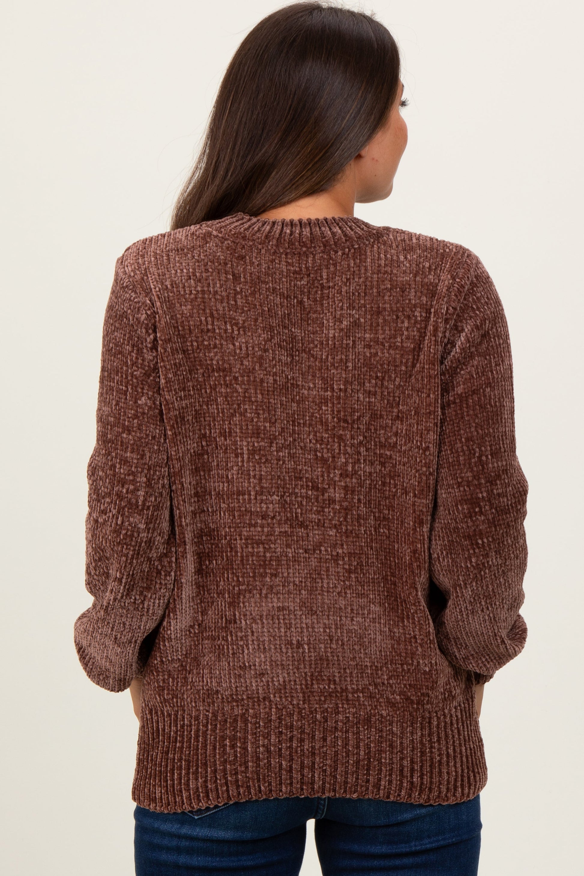 Stay cozy and stylish all season long with our Brown Chenille Knit Maternity Sweater. Made from ultra-soft chenille fabric, this sweater offers gentle stretch and a comfy fit that adapts perfectly to your growing bump. The rich brown color adds warmth to your maternity wardrobe, while the classic crew neckline and ribbed cuffs provide timeless appeal. Perfect for layering or wearing on its own, this sweater ensures you look and feel great from early pregnancy through postpartum. Pair it with your favorite jeans or leggings for effortless everyday comfort. Machine washable for easy care.