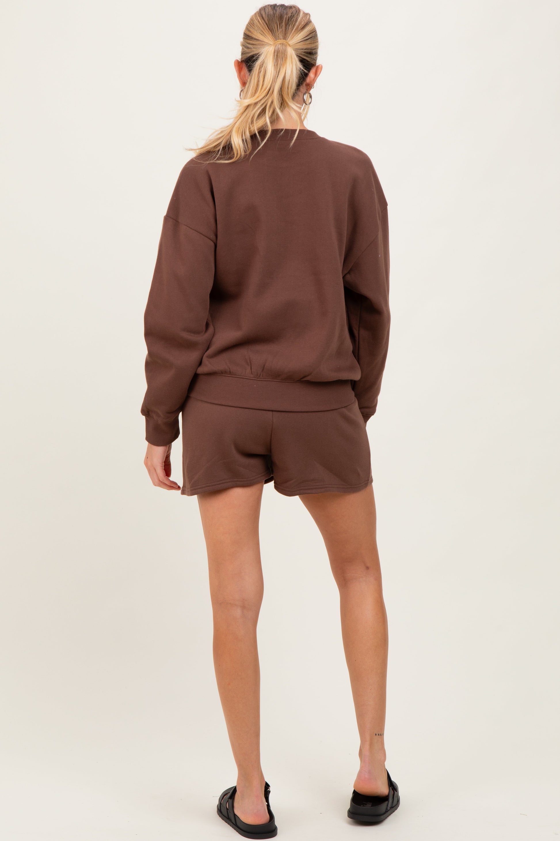 Brown Fleece Sweatshirt Shorts Maternity Set