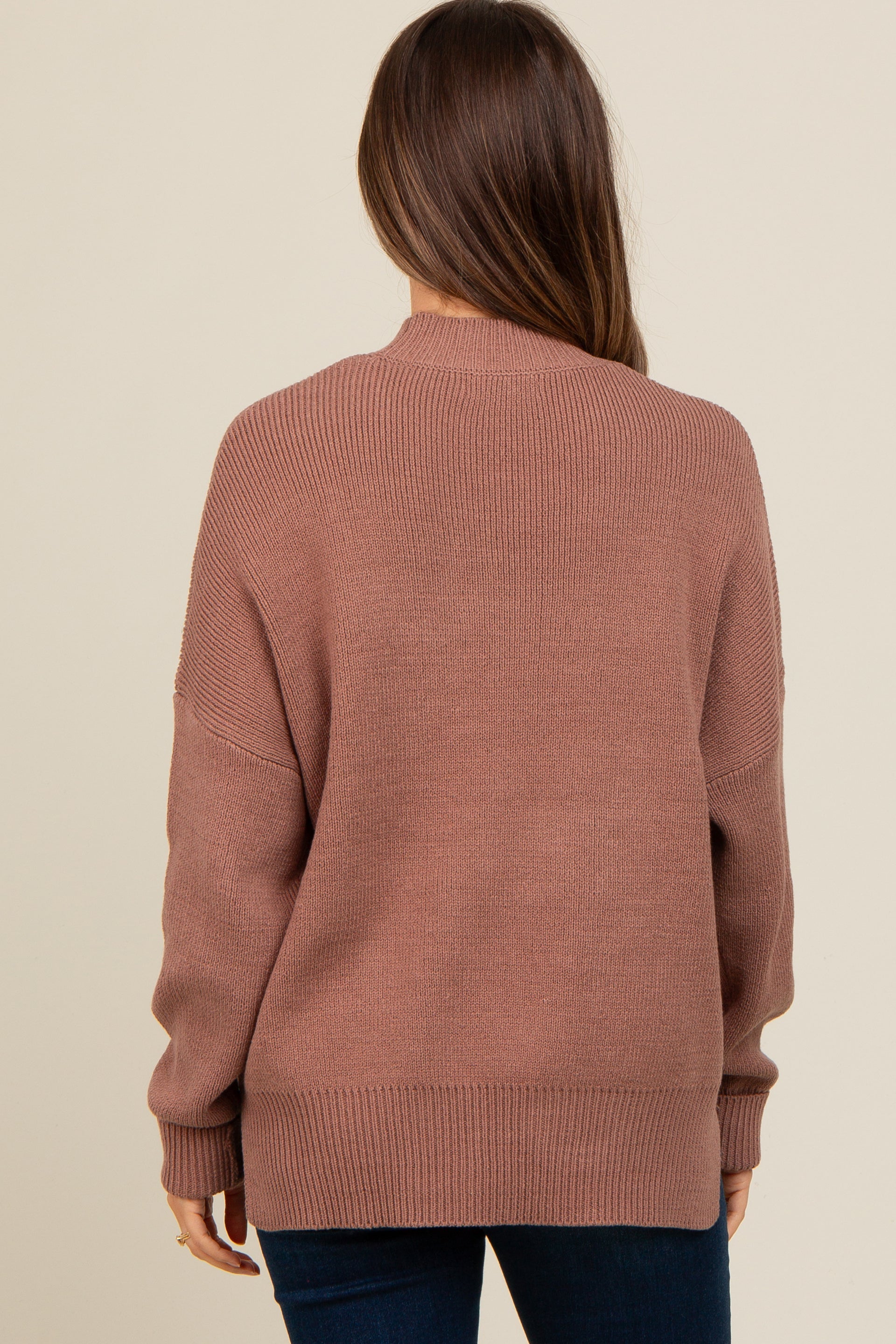 Embrace cozy comfort and effortless style with our Brown Mock Neck Basic Maternity Sweater. Designed to gently accommodate your growing bump, this soft knit sweater features a classic mock neck and a relaxed, roomy fit for all-day wear. The rich brown hue adds warmth and versatility to your maternity wardrobe, perfect for layering or wearing on its own. Crafted from breathable, stretchy fabric, it ensures flexibility and comfort through every trimester. Whether you're running errands or relaxing at home, this timeless piece is a must-have for maternity fashion essentials. Easy care and durable for long-lasting wear.