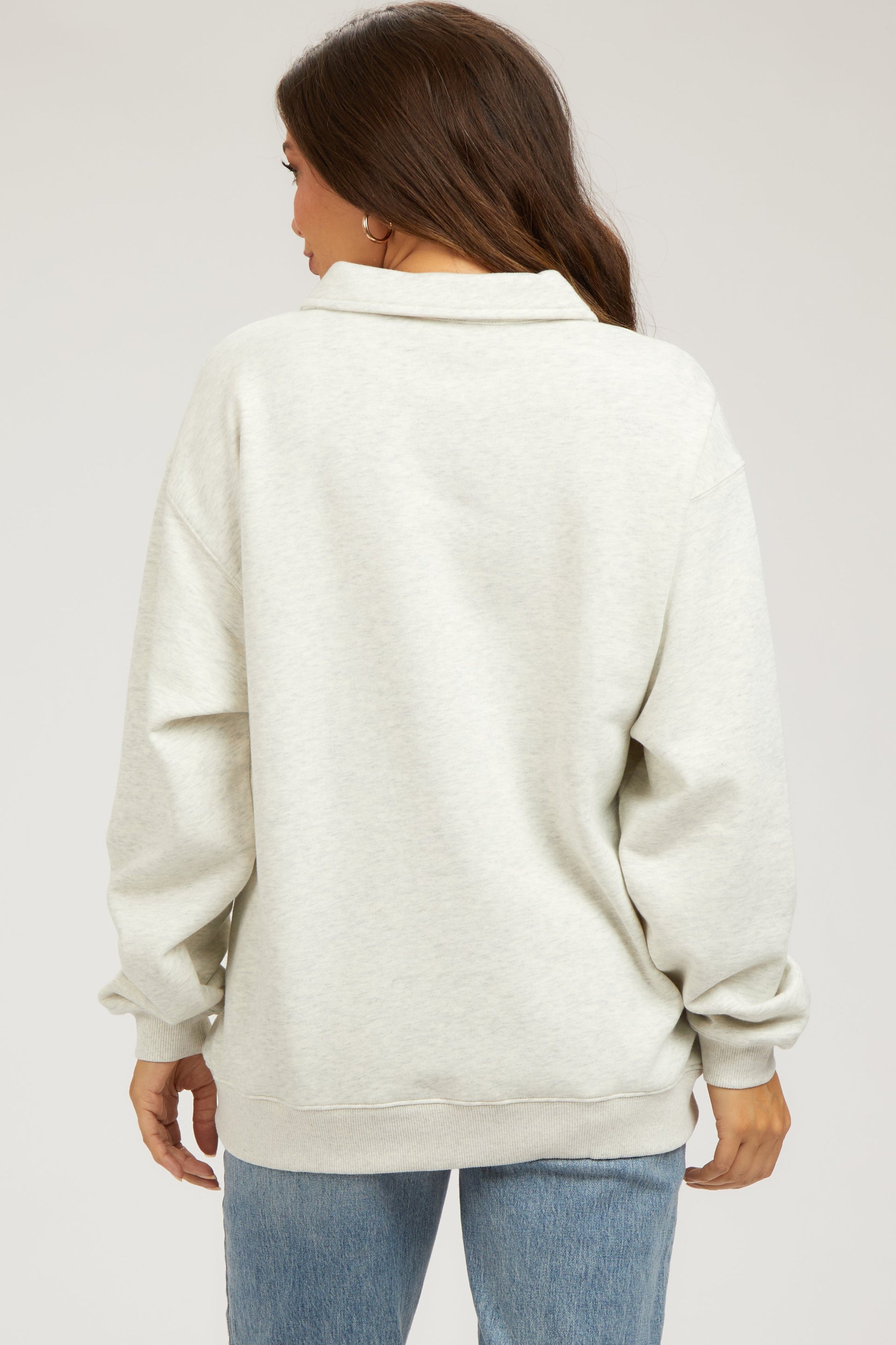 A pullover maternity sweatshirt featuring long sleeves, front buttons and a collared neckline.