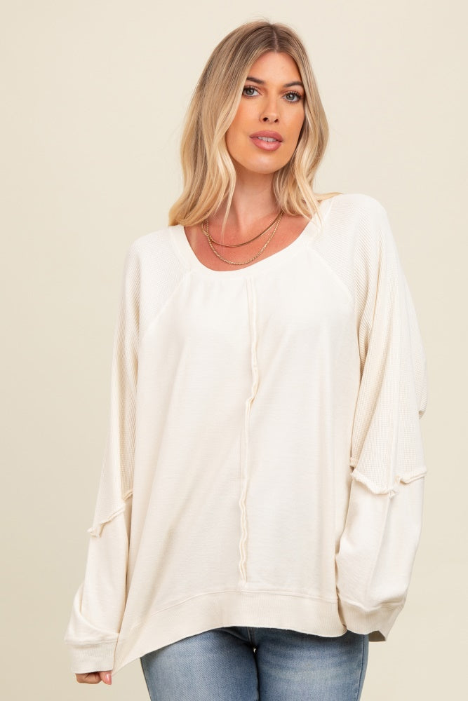 Cream Mixed Knit Raw Hem Pullover Top