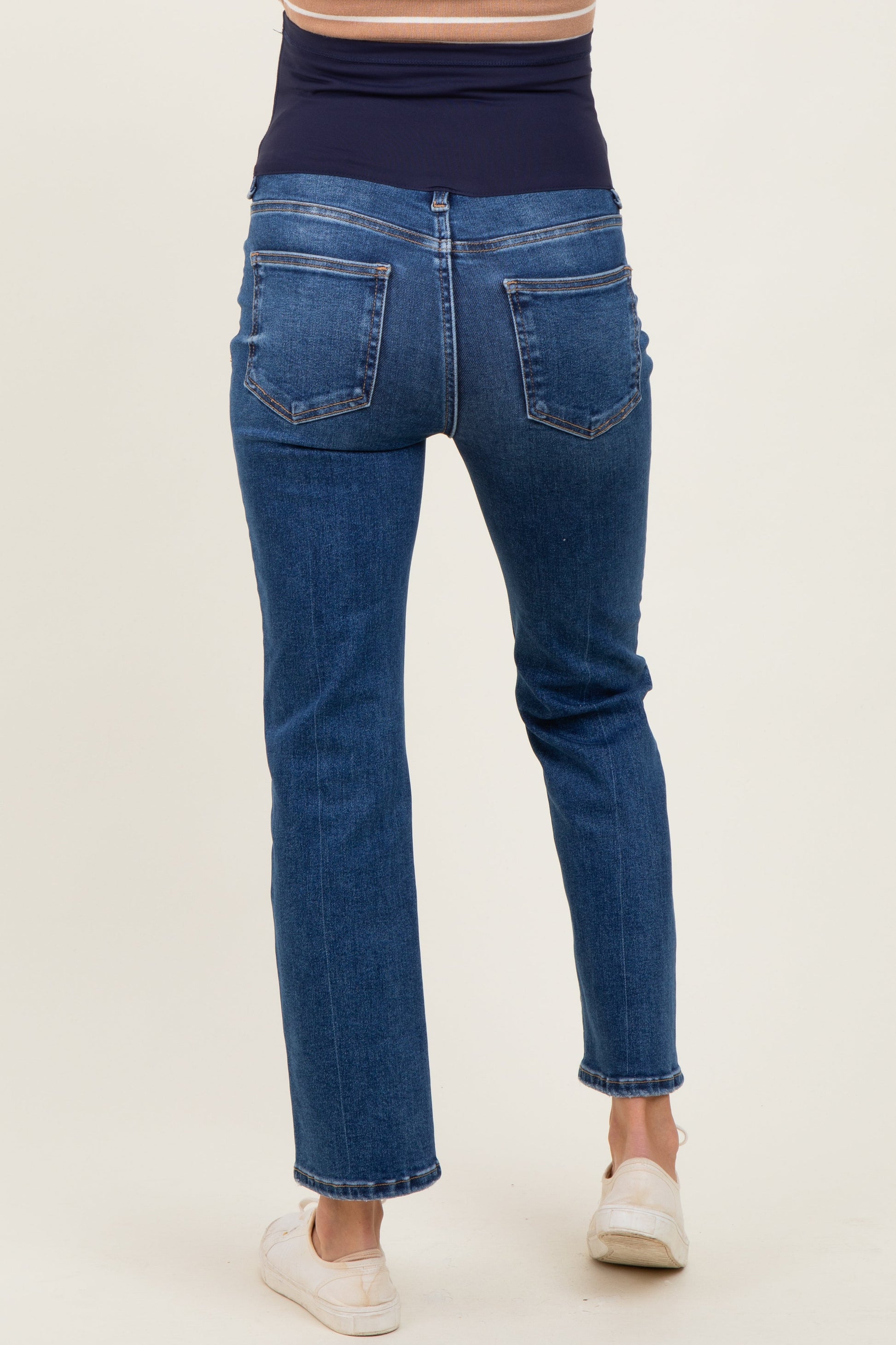 Meet your new go-to jeans: our Dark High Rise Crop Straight Maternity Jeans. Designed with a flattering high-rise fit and a comfortable stretchy waistband to support your growing bump, these jeans make everyday dressing effortless. The modern cropped straight leg is both chic and versatile—perfect for pairing with sneakers or ankle boots. Crafted in soft, premium denim with a classic deep blue wash, they’re easy to dress up or down for any occasion. Stay stylish and comfortable throughout your pregnancy with these must-have maternity jeans.