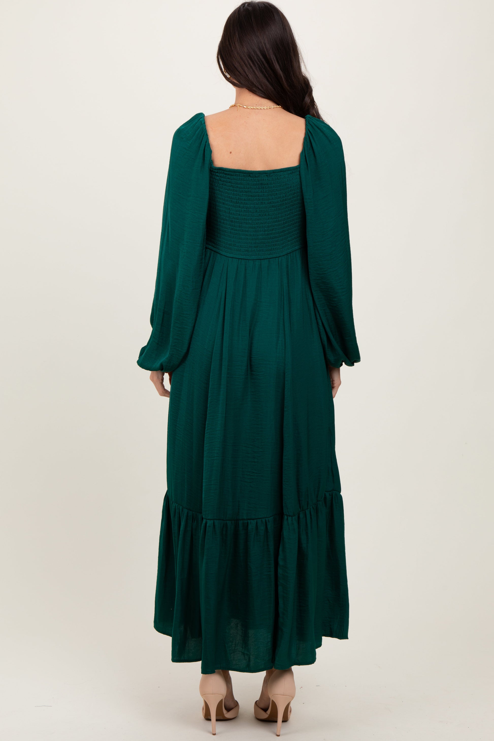 Embrace elegance and charm with our Emerald Bow Satin Maxi Dress. This stunning dress features a rich emerald hue that complements every skin tone, crafted from silky satin fabric for a smooth, luxurious feel. The highlight is the beautiful bow detail at the bust, adding a touch of femininity and sophistication. Long, flowing sleeves and a tiered maxi silhouette create graceful movement, perfect for any special occasion or a chic evening out. Pair it with nude heels and delicate jewelry for a timeless look that exudes confidence and style. Feel radiant in this must-have statement piece!