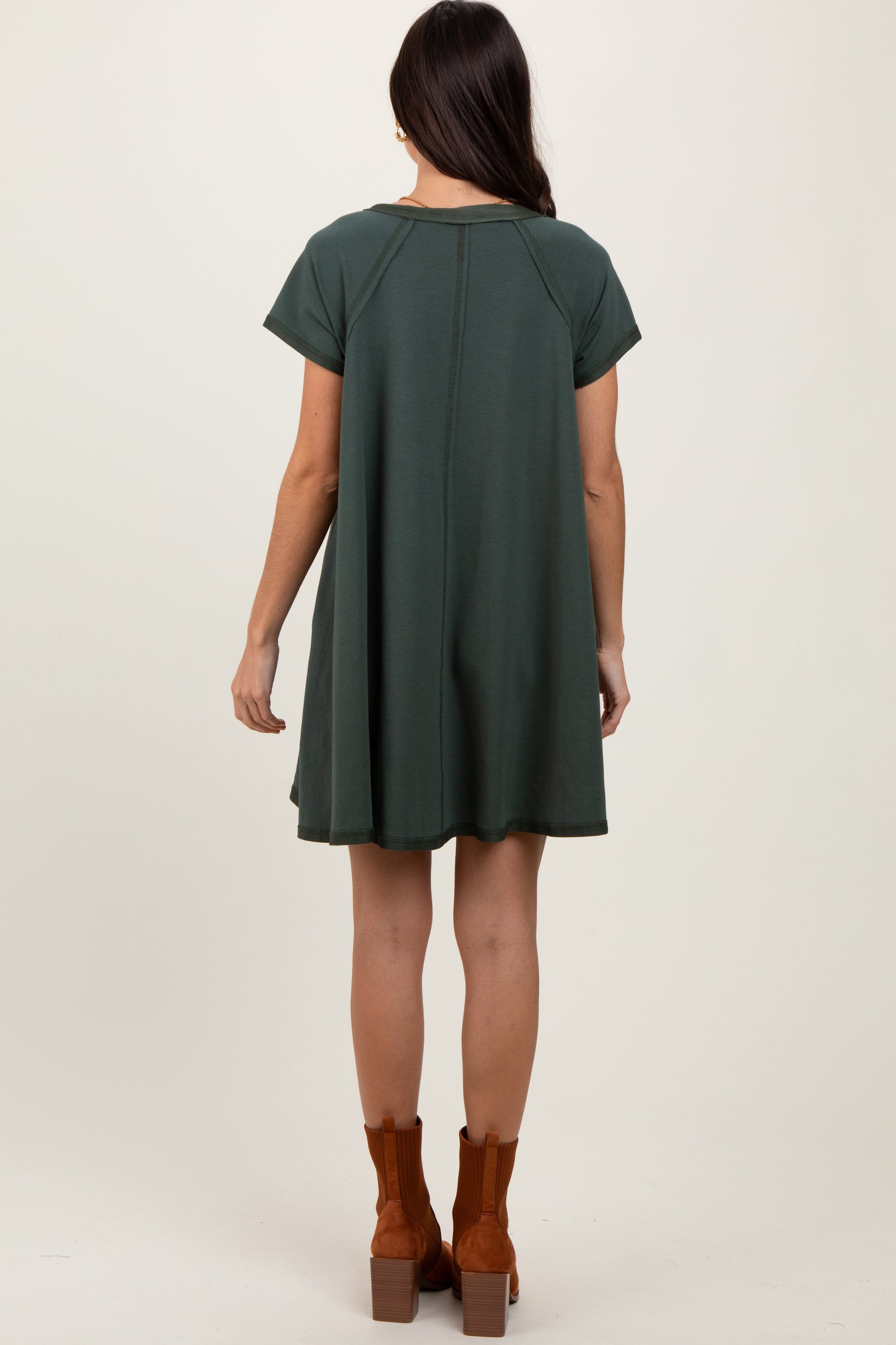 Forest Green French Terry Basic Short Sleeve Mini Dress