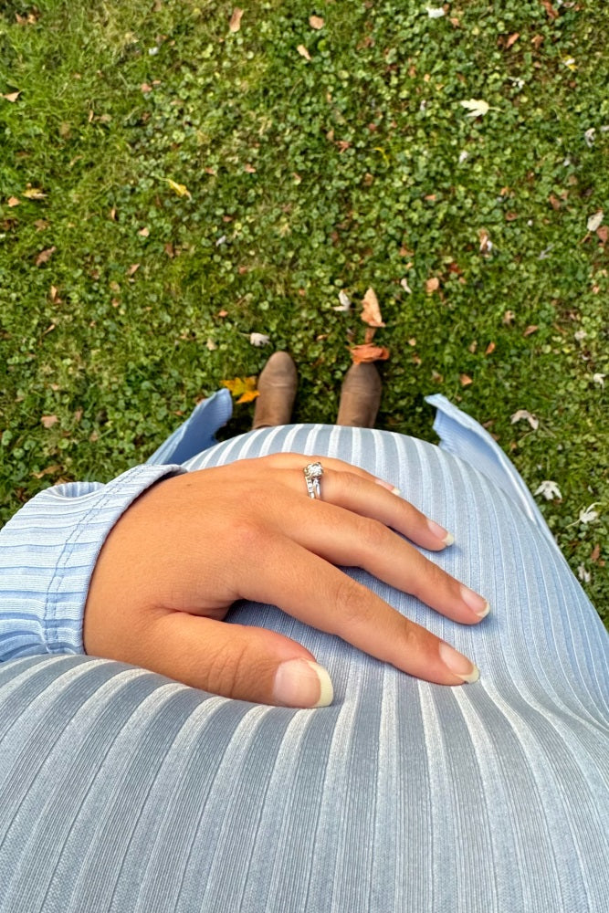 Effortless style meets comfort in our Light Blue Ribbed Sleeveless Dress & Cardigan Maternity Set. This beautiful two-piece features a soft, stretchy ribbed knit dress that flatters your changing shape from bump to baby. The sleeveless design keeps you cool, while the matching cardigan adds versatility for layering. Perfect for everything from casual outings to baby showers, this set is as practical as it is chic. The serene light blue hue brings a fresh, modern touch to your maternity wardrobe. Embrace easy, everyday elegance throughout your pregnancy and beyond with this must-have set!