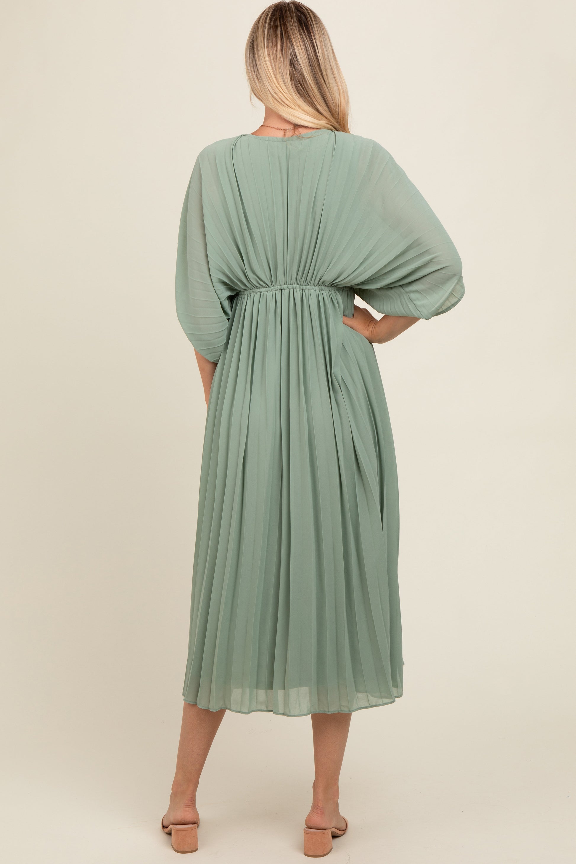 Elevate your wardrobe with this Light Olive Pleated V Neck Maxi Dress, a perfect blend of elegance and comfort. Featuring a flattering V-neckline and beautifully pleated fabric, this dress gracefully flows to a midi length, creating a sophisticated silhouette. The gathered waist enhances your figure, while the loose, kimono-style sleeves add a modern, airy touch. Crafted from lightweight, breathable material, it’s ideal for daytime events, brunches, or evening occasions. Pair it with heels or sandals for a effortlessly chic look. Make a statement with timeless style in this versatile maxi dress perfect for any season.