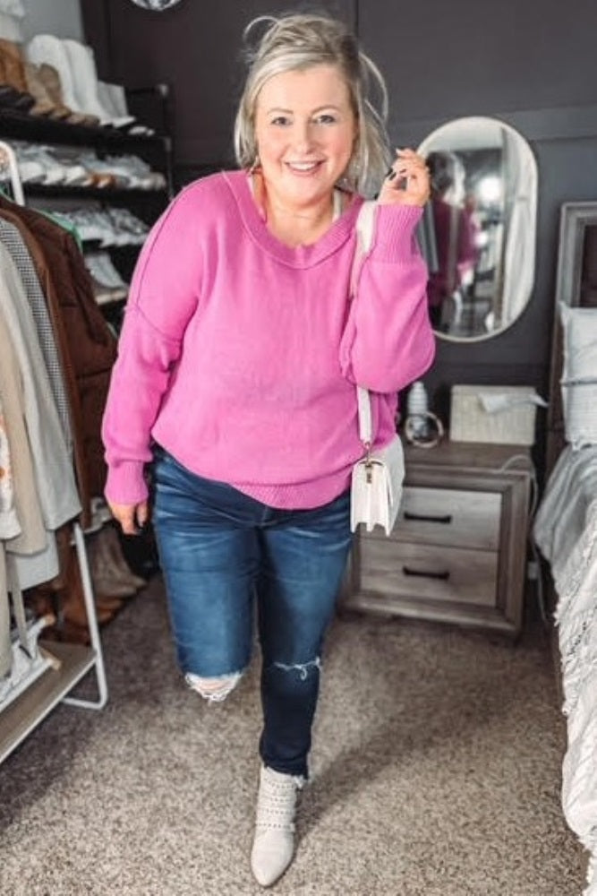 Magenta Exposed Seam Side Slit Sweater