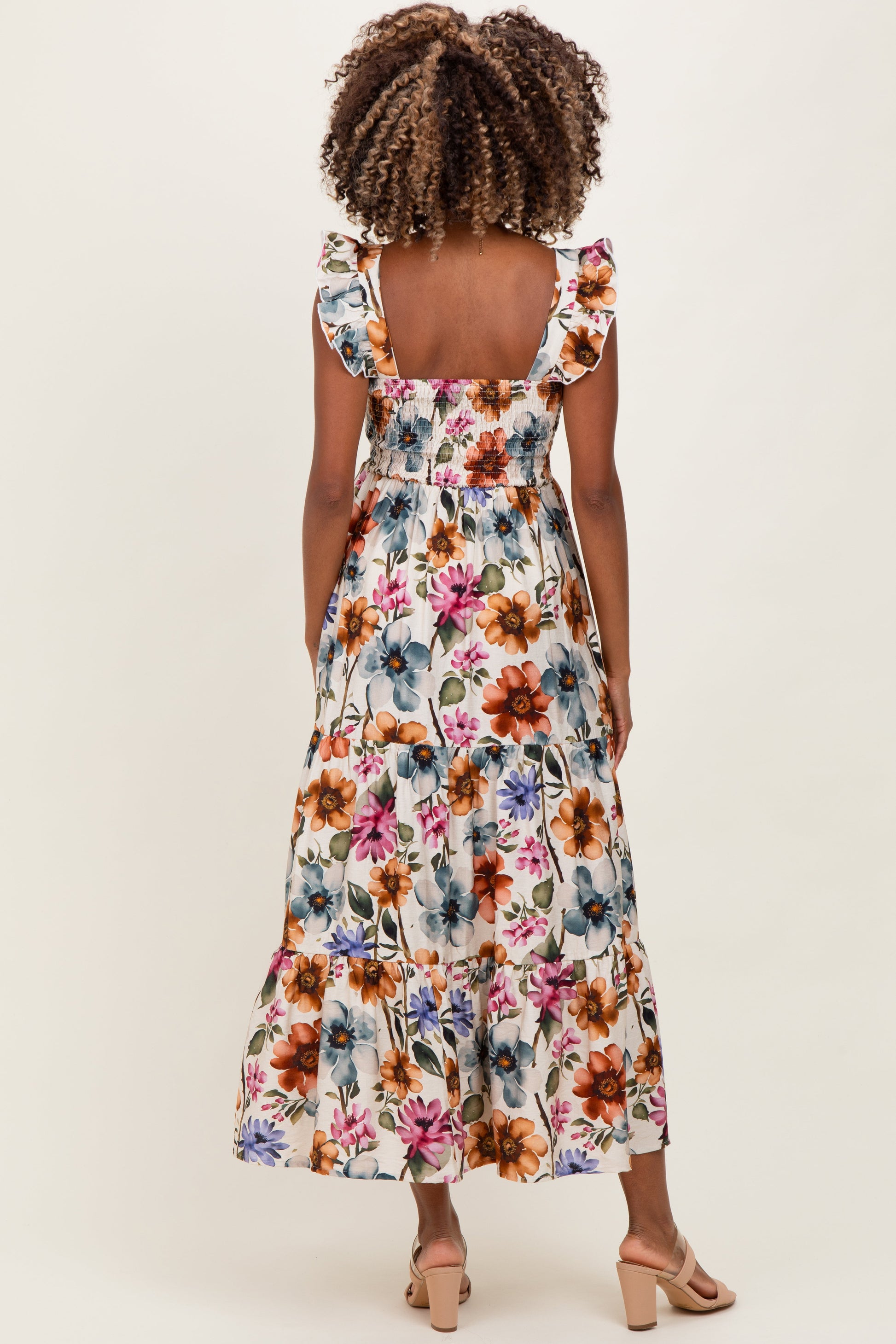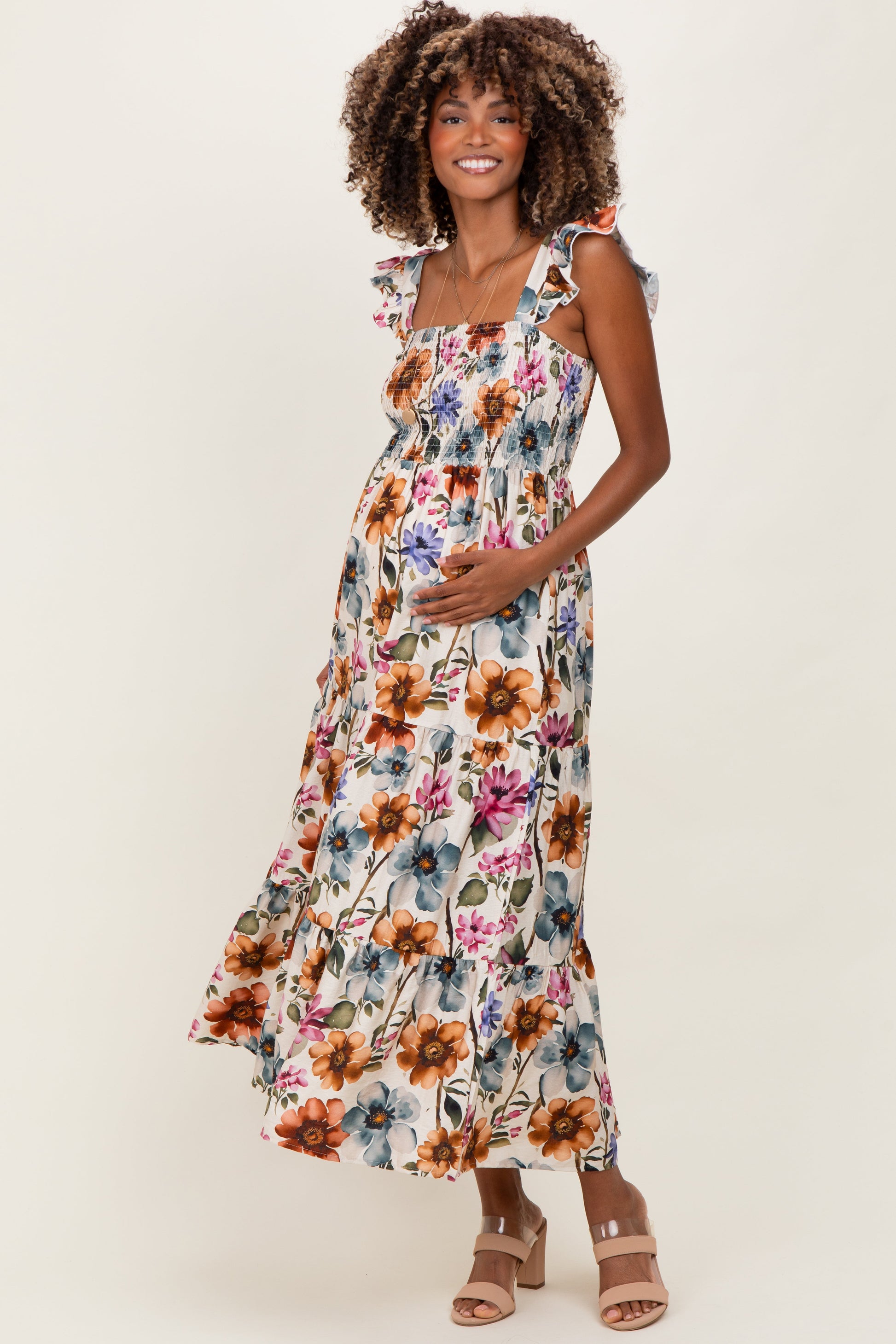 Multicolor Floral Smocked Tiered Maternity Maxi Dress