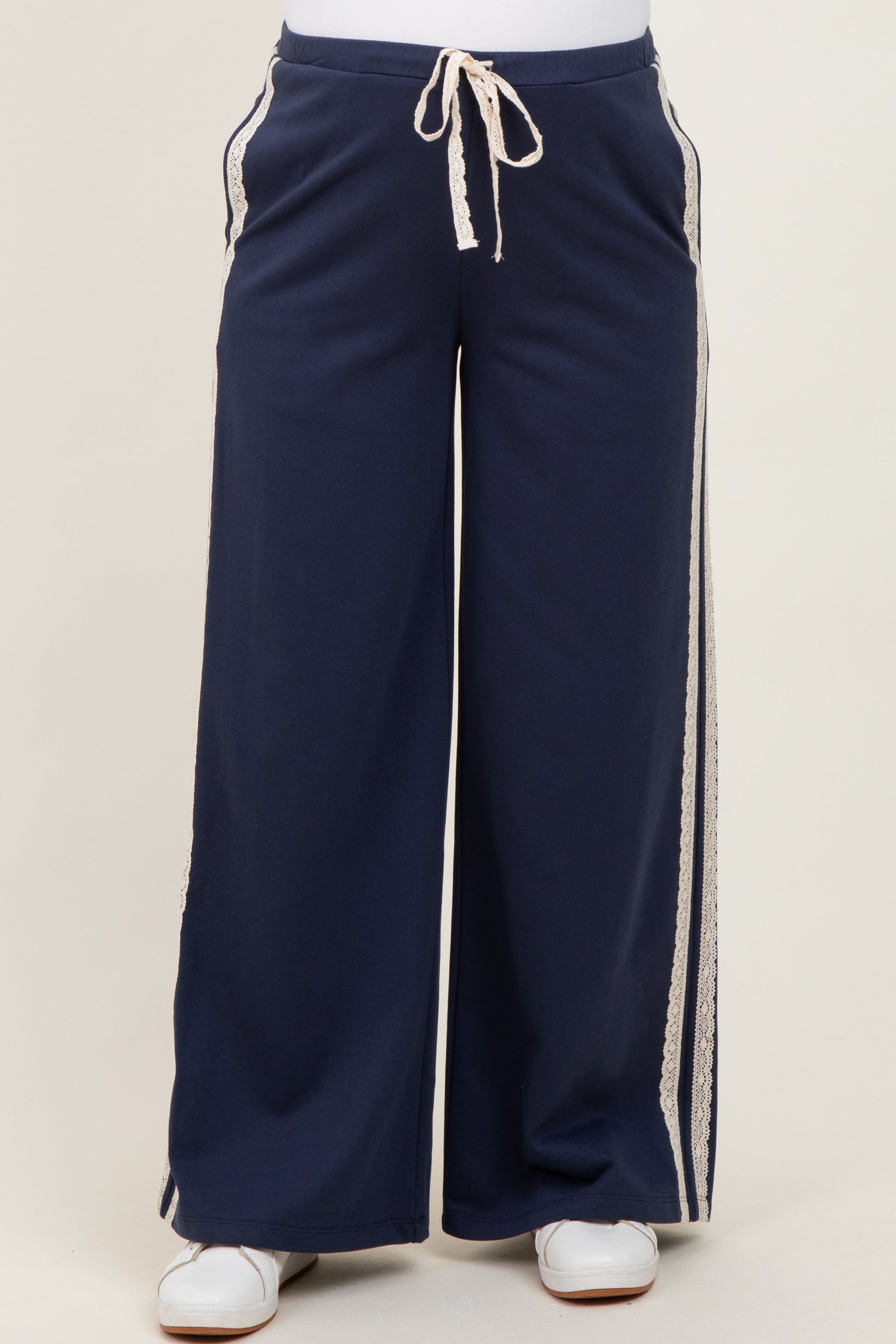 Navy Lace Stripe Drawstring Maternity Lounge Pants