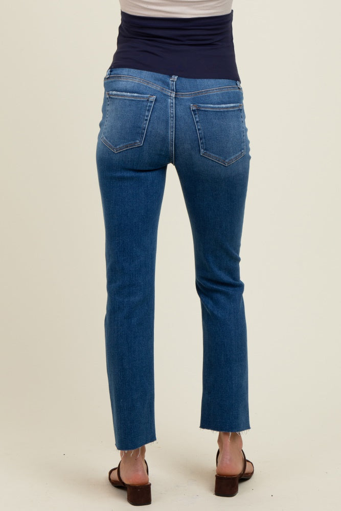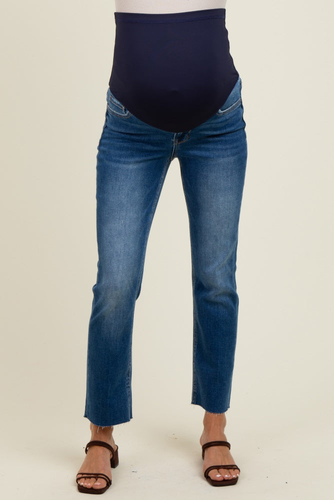 Navy Raw Hem Cropped Slim Straight Leg Maternity Jeans