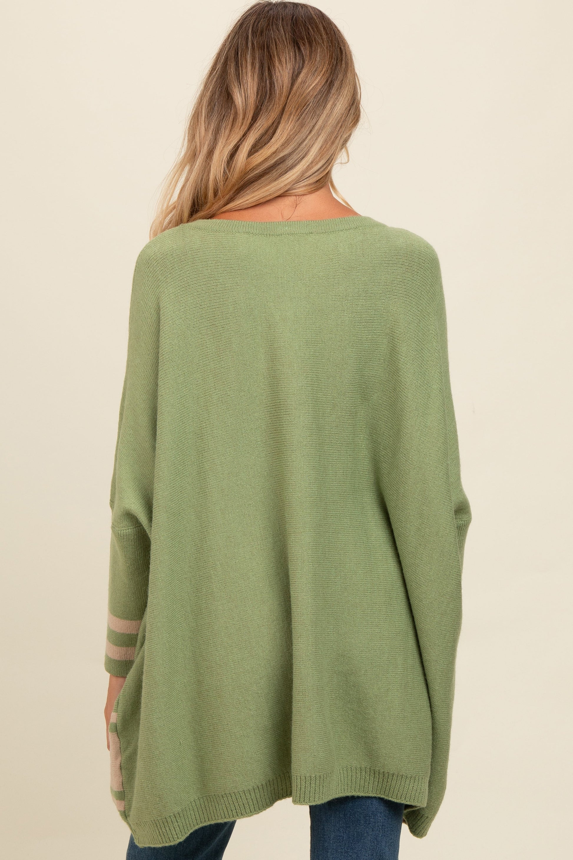Olive Mixed Stripe Dolman Sleeve Maternity Sweater