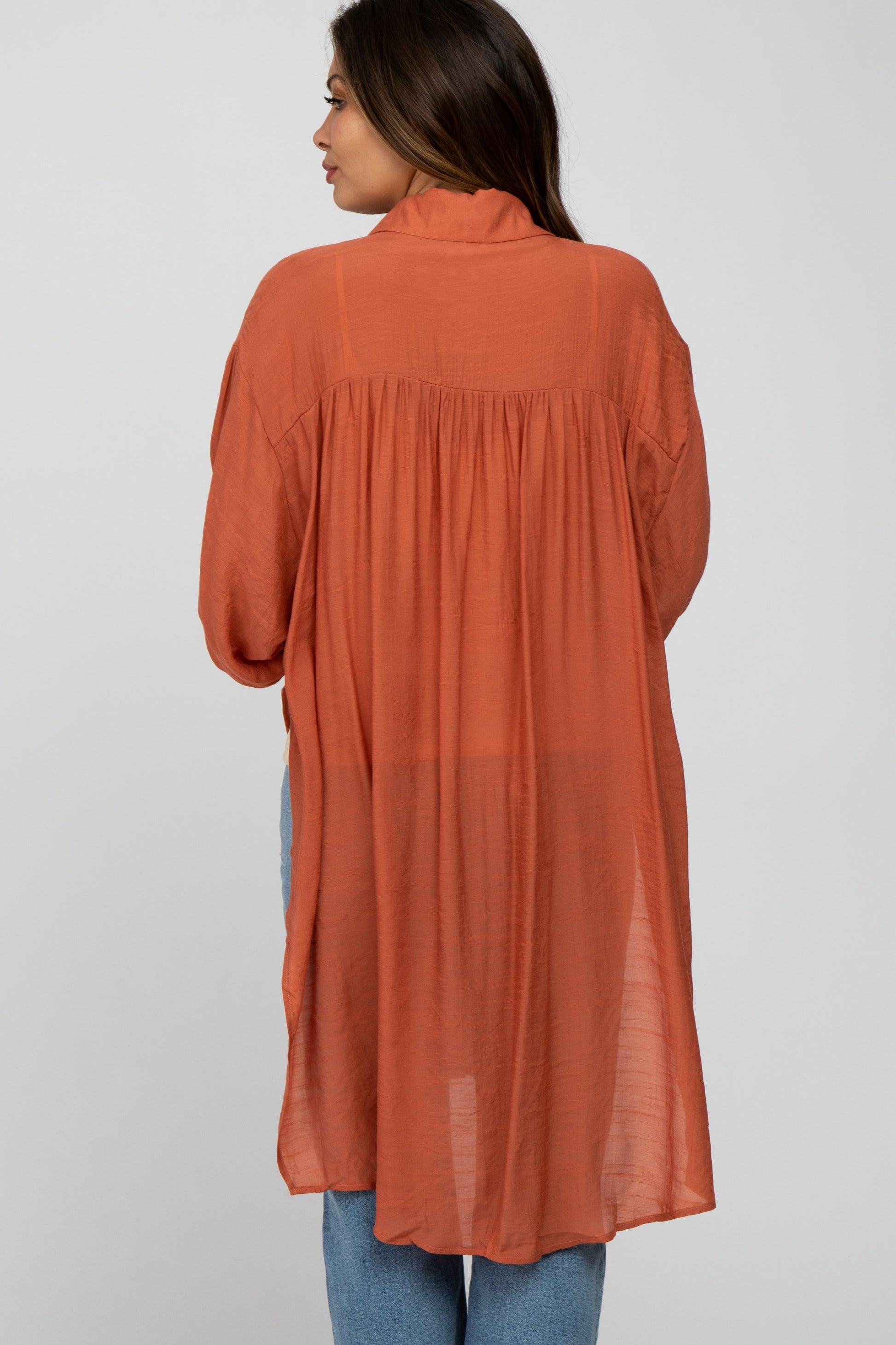 Rust Button Front Side Slit Oversized Maternity Blouse