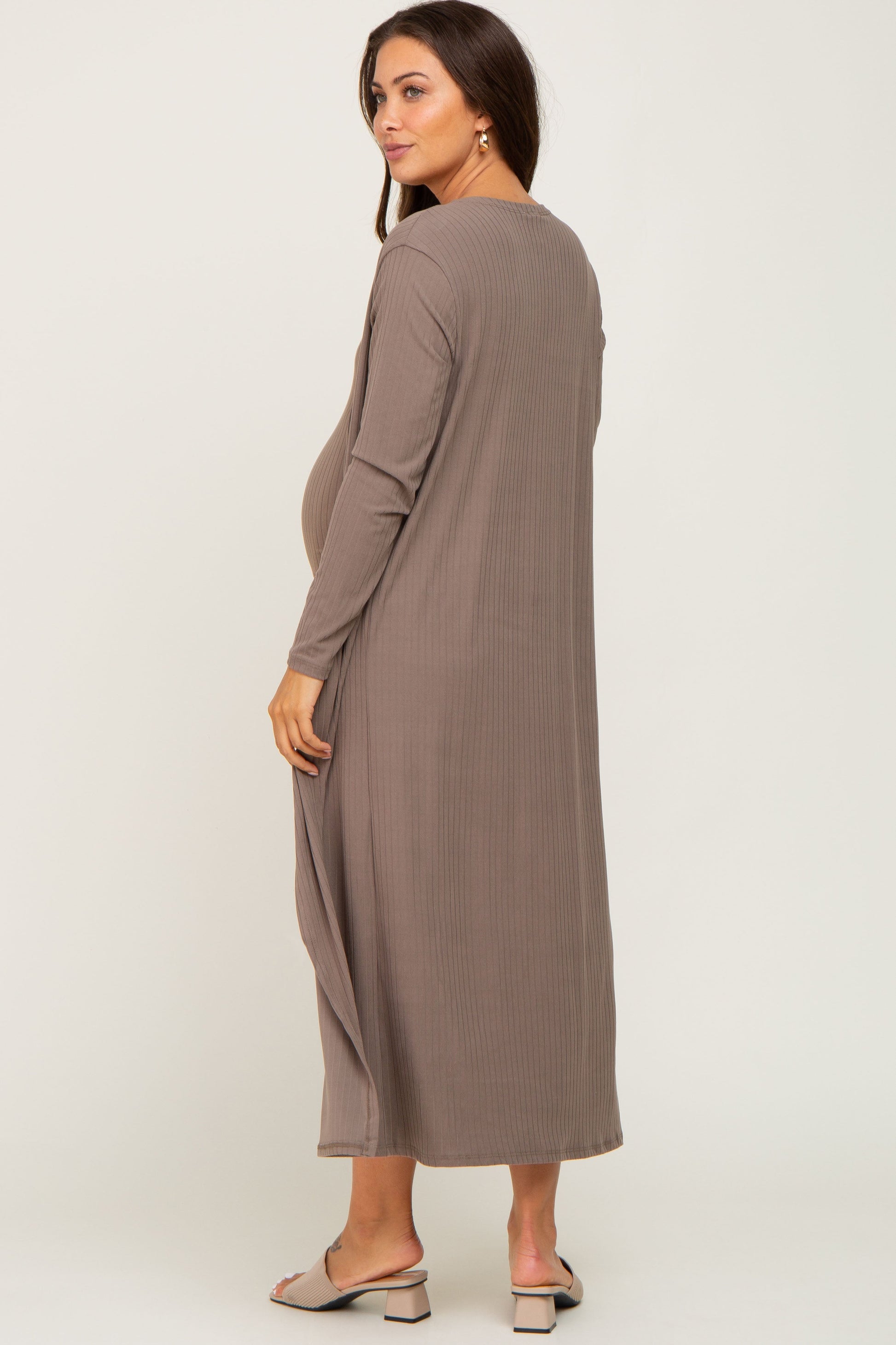 Taupe Ribbed Cardigan 2 Piece Maternity Set