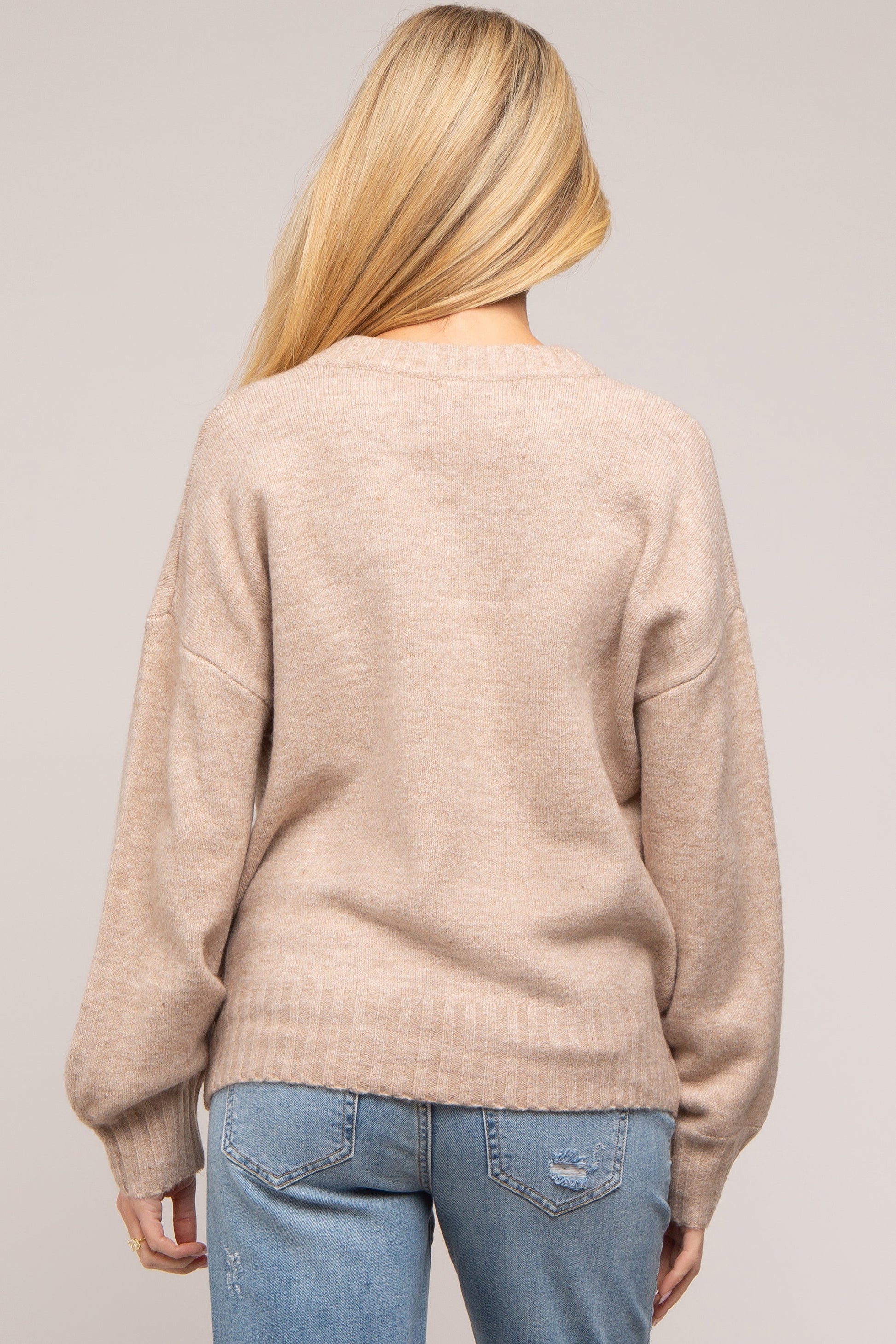 Taupe Ribbed Cuff Maternity Sweater