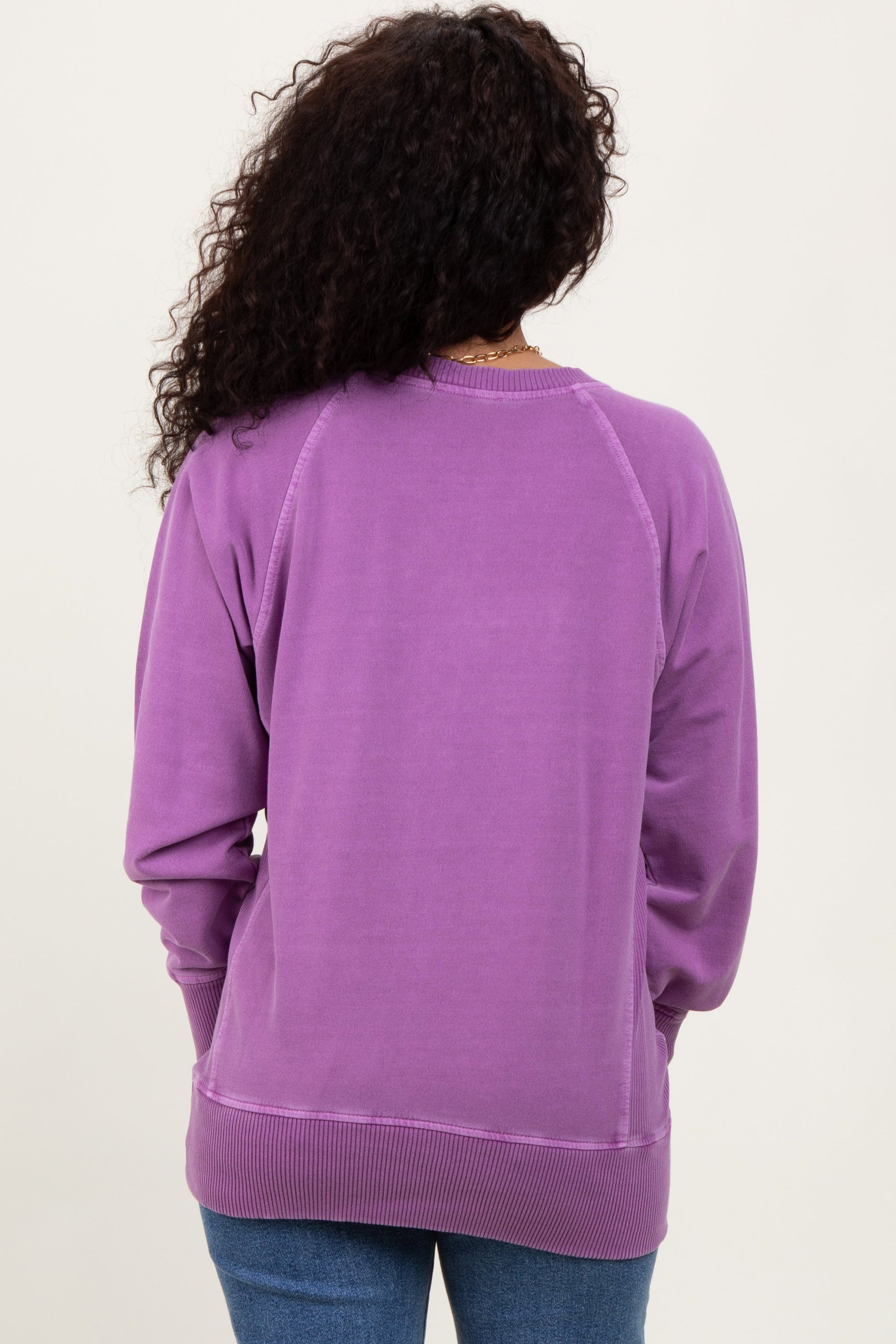Embrace cozy comfort with our Violet Vintage Wash French Terry Pullover. Crafted from soft, breathable French terry fabric, this pullover features a relaxed fit with raglan sleeves for easy movement and a casual vibe. The vintage wash gives it a timeless, worn-in look, while ribbed cuffs and hem add subtle shape and style. Front kangaroo pockets offer practicality and a laid-back touch. Perfect for layering or wearing on its own, this pullover pairs effortlessly with jeans or leggings for a chic, everyday outfit. Stay warm and stylish in vibrant violet all season long!